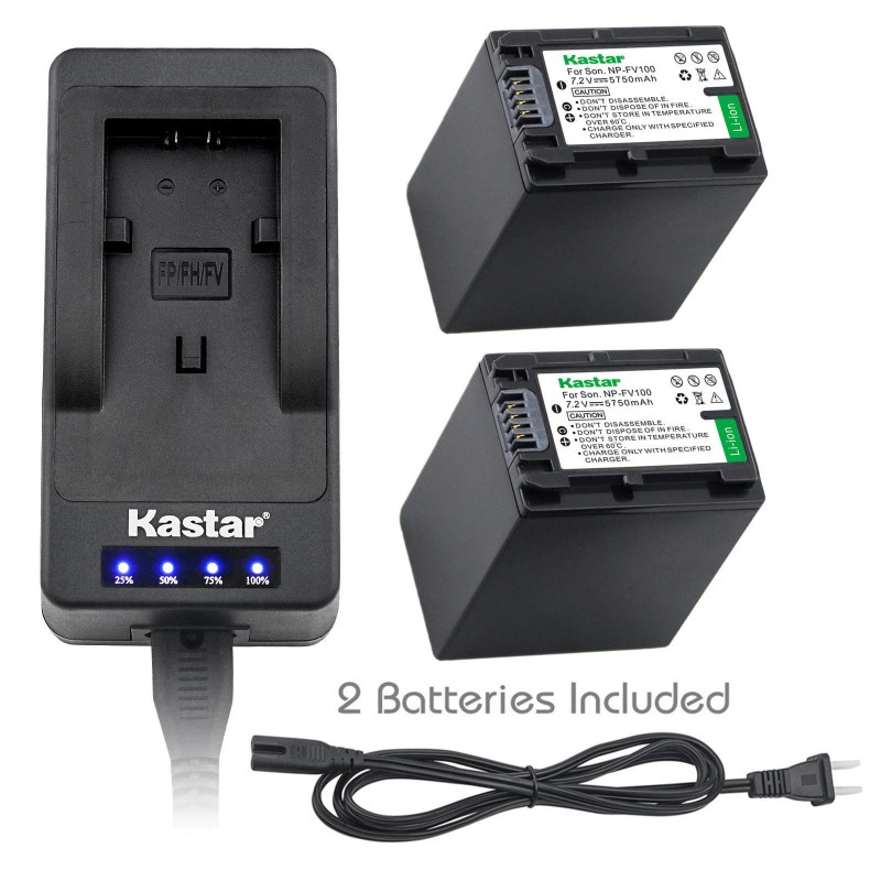 Kastar NP-FV100 Battery or LED Charger for Sony PXW-Z90V PXW-X70 FDR-AXP55 FDR-AX53 - 4 Batteries