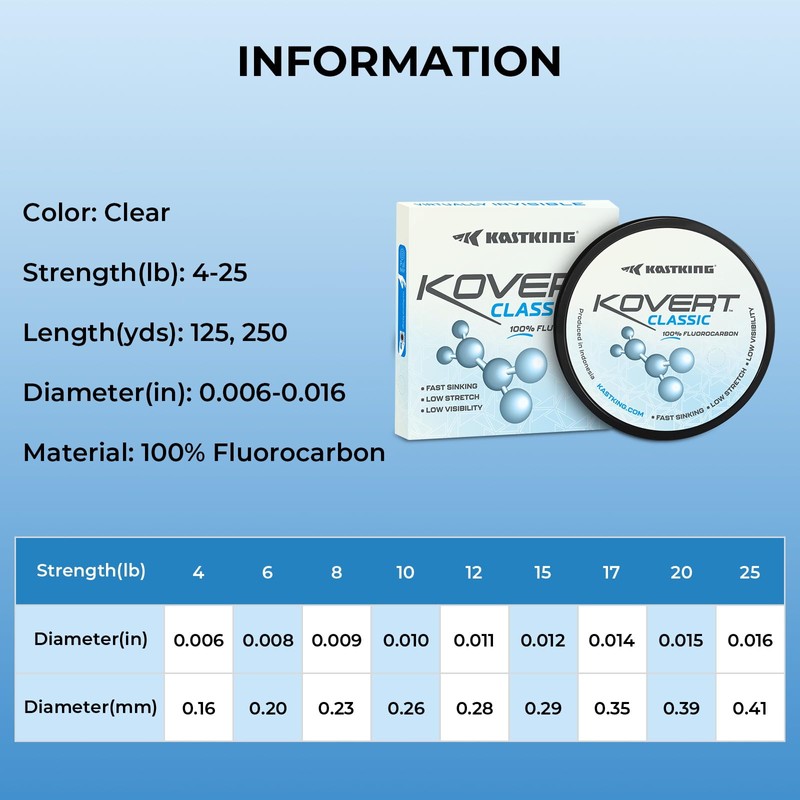 - 【100% FLUOROCARBON WITH CLASSIC PERFORMANCE】KastKing Kovert Classic is extruded in Indonesia and uses Japanese PVDF resin. It provides outstanding quality on a proven formula while still being a good value.
