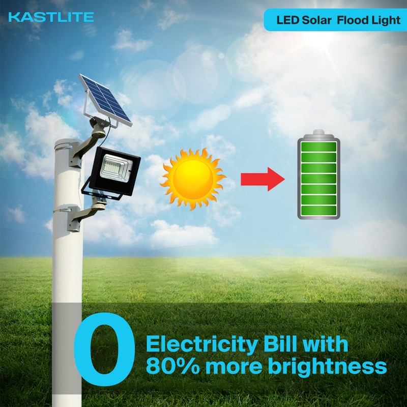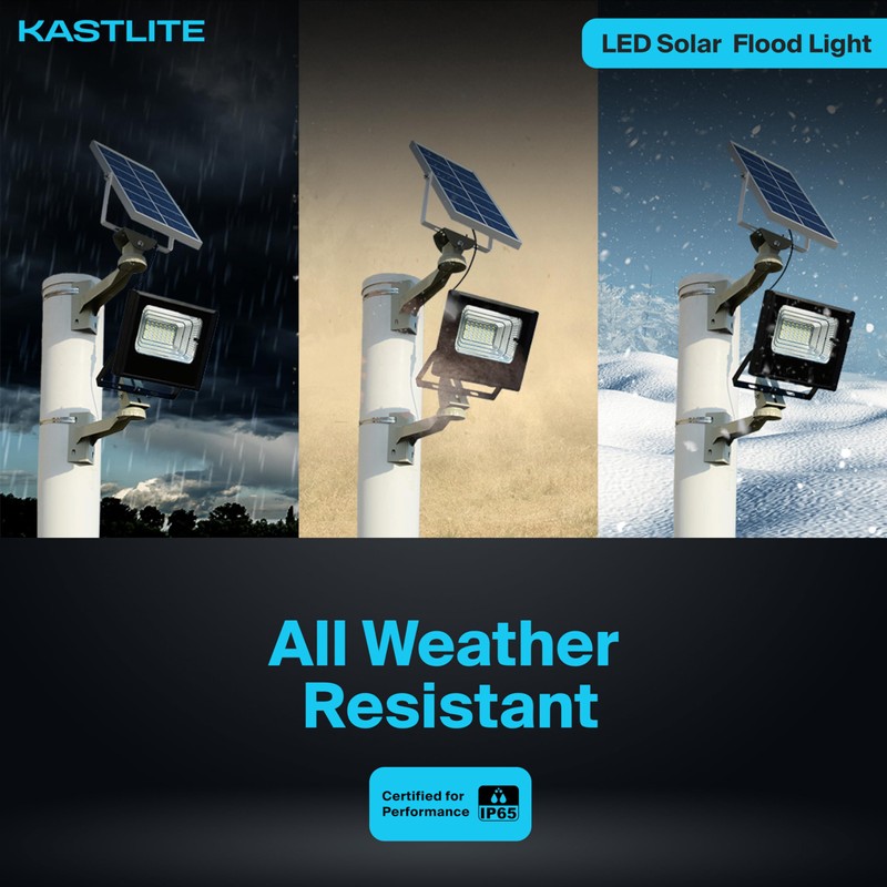 KastLite 5W LED Dusk to Dawn Solar Flood Light - 50 Watt Equiv. Waterproof Outdoor Fence/Security Floodlight w/Photocell Sensor & Remote Control - 5000K 600 Lumen Spotlight for Patio Street Driveway
