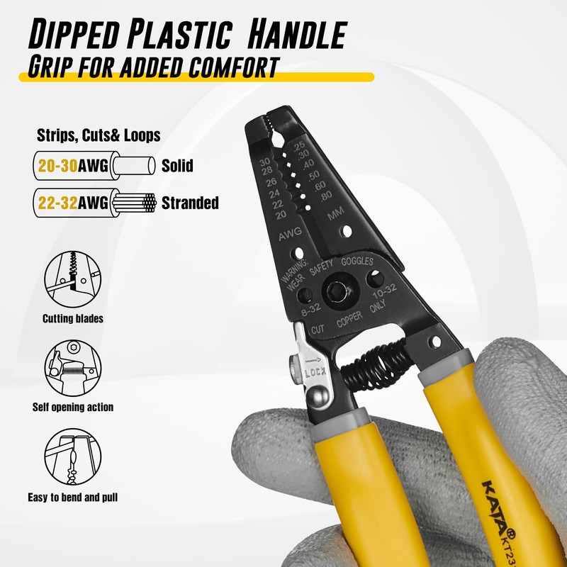 KATA 20-32 AWG Wire Stripper Cutter Wire Stripping Tool and Multi-Function Hand Tool for Stranded and Solid Copper Cable. Aluminum Wire
