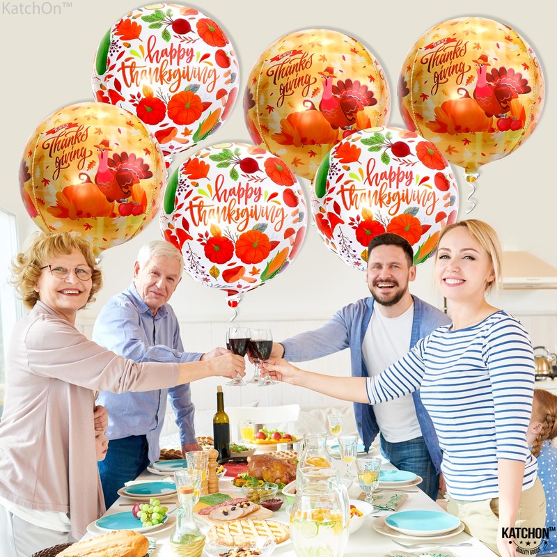 KatchOn, Thanksgiving Balloons for Thanksgiving Decorations - 22 Inch, 6 Pieces | 4D Thanksgiving Mylar Balloons | Thanksgiving Party Decorations | Happy Thanksgiving Foil Balloons | Turkey Balloons