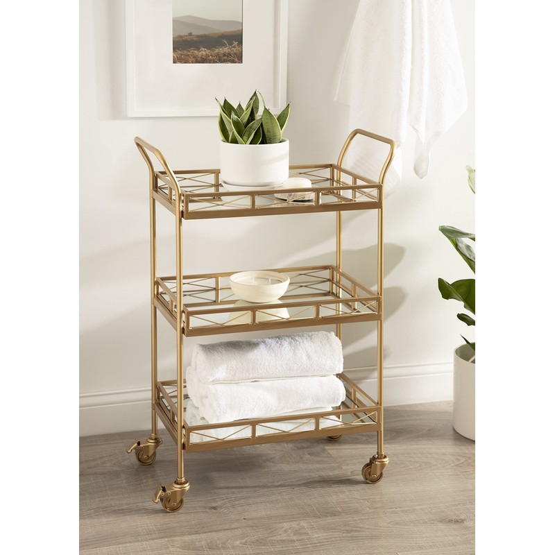 - QUALITY MATERIAL: The tiers and metal frame of this bar cart are made from a resilient metal, framing three mirrored surfaces for a glamorous and premium look