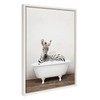Kate and Laurel Sylvie Baby Zebra in Rustic Bath Framed Canvas Wall Art by Amy Peterson Art Studio, 18x24 White, Modern Fun Decorative Bathtub Wall Art for Home Décor