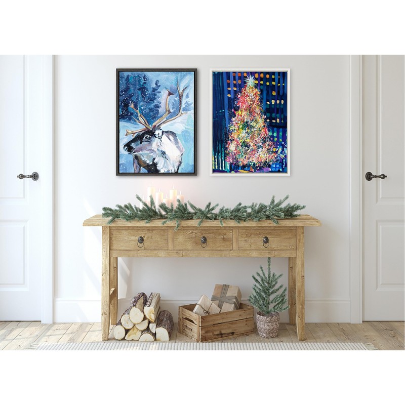 - Modern Framed Canvas Wall Art: New York Christmas art on framed high-quality gallery-wrapped canvas. Our premium high-tension canvas is stretched across a solid surface to resist sagging. Outside display dimensions are 24 inches by 18 inches by 1.6 inches