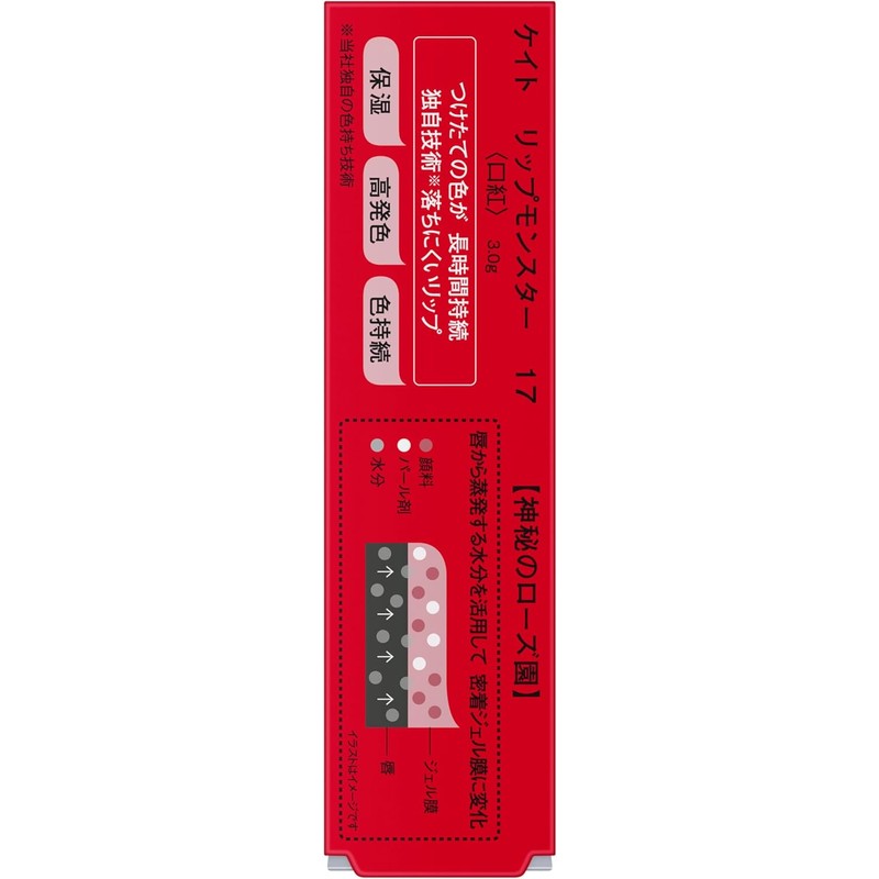 A popular lipstick lip monster that will last for a long period of time with freshly colored colors that won't fall off easily. Unique technology that utilizes moisture that evaporates from the lips and transforms into a gel membrane to a seal that lasts for a long time. High color & moisturizing. ※ Our unique color retention technology