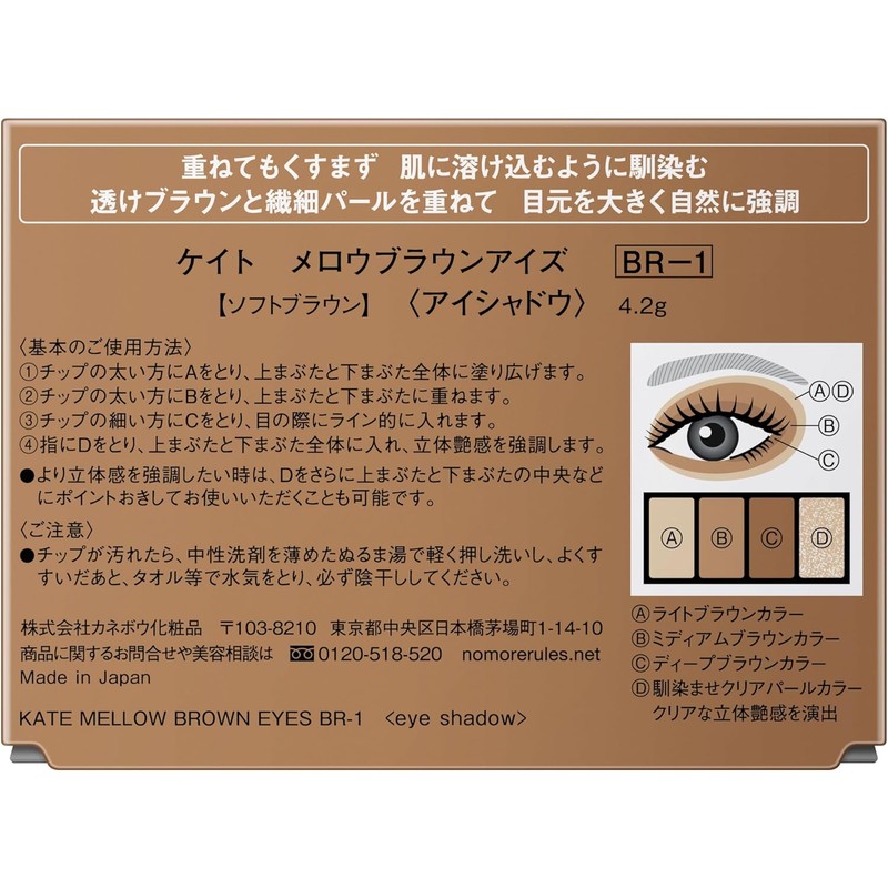 KATE,mellow brown eyes BR-1,Soft Brown,Eyeshadow Palette, Neutral Eye Makeup