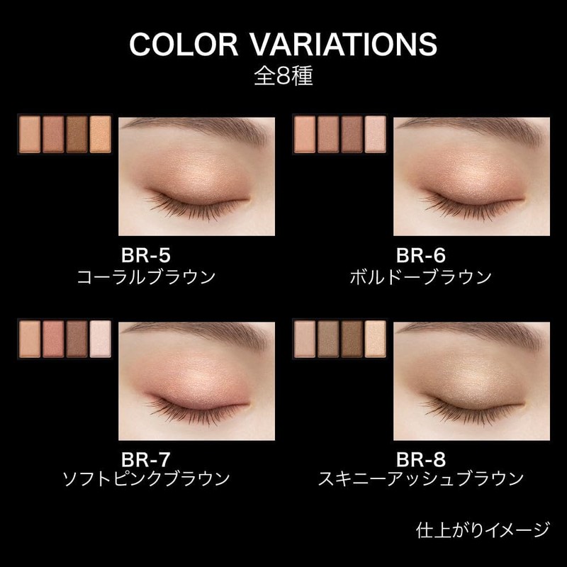 - Use your finger to apply product D all over the upper and lower eyelids to create a three-dimensional, lustrous finish.
