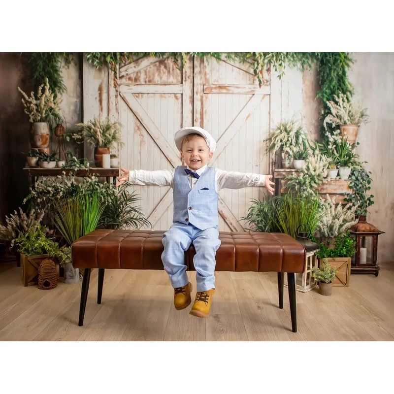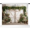 Kate Spring Photo Backdrop Fabric Green Plant Rustic Wood Door Photography Background Photo Studio Props, 10x8ft