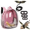 kathson Bearded Dragon Carrier with Harness and Leash Set, Large Reptile Travel Carrier Portable Lizard Backpack Clear Small Animals Carrying Bag for Gecko Hamster Rabbit Hedgehog Kitten (Pink)