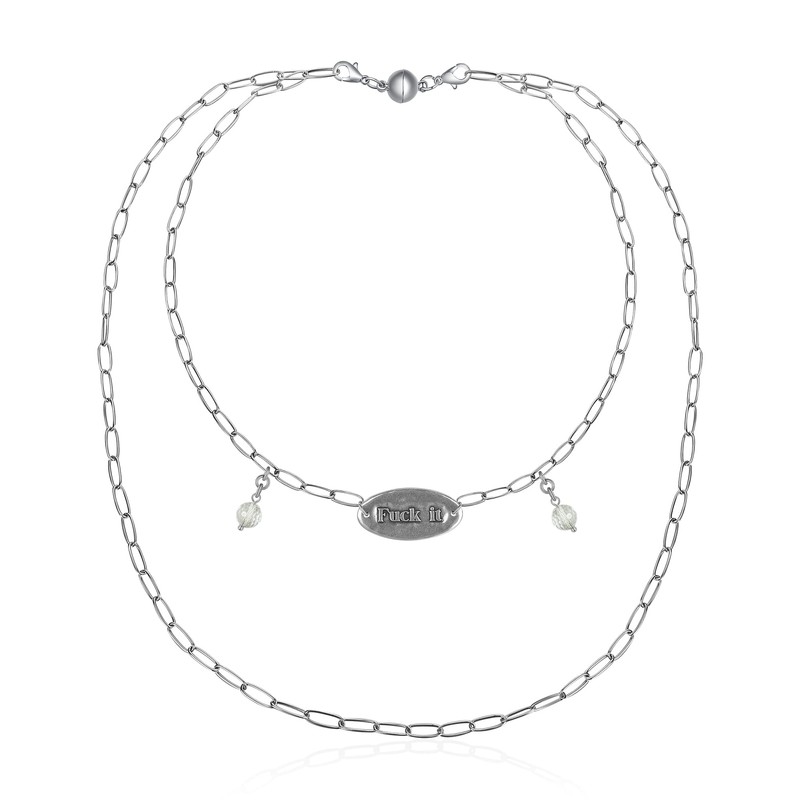 Katia Designs F*** It | Star Motif Necklace - Inspirational Long Boho Layered Chain for Women, Silver Finish