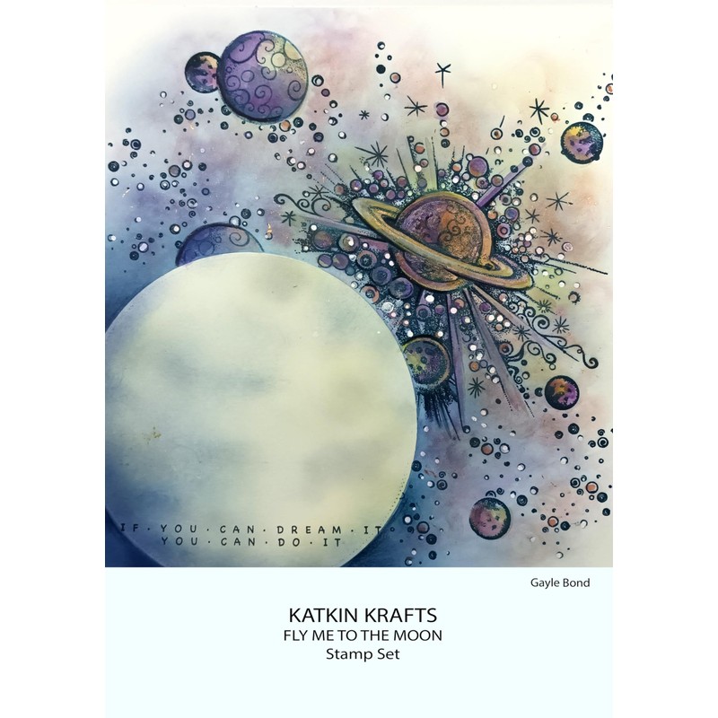 KatKin Krafts KK0040 Fly Me to The Moon Clear Stamp Set, 6" x 8", Clear, 6" x 8"