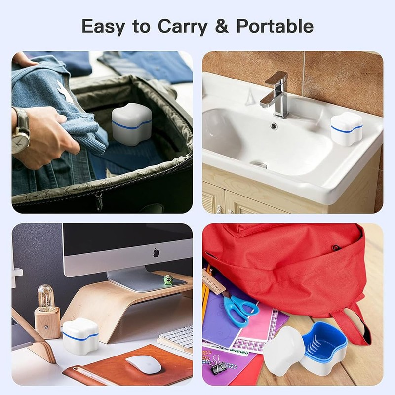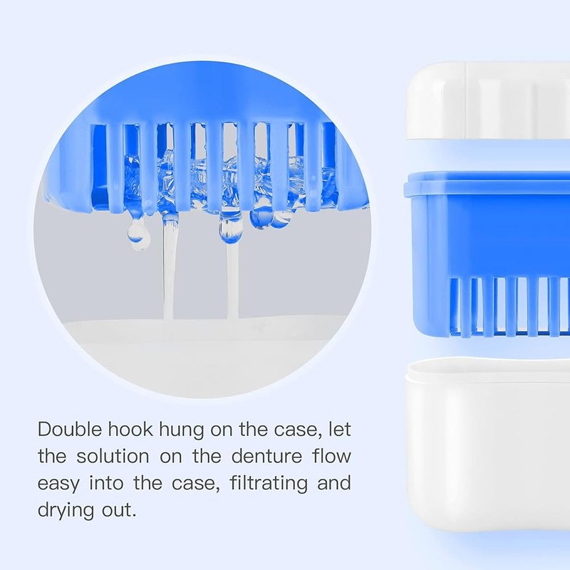- Advantages: large capacity allows you to store a complete prosthesis teeth. And our braces box with a rinsing basket, convenient to clean false teeth or filter fluid. Enough for everyday use.