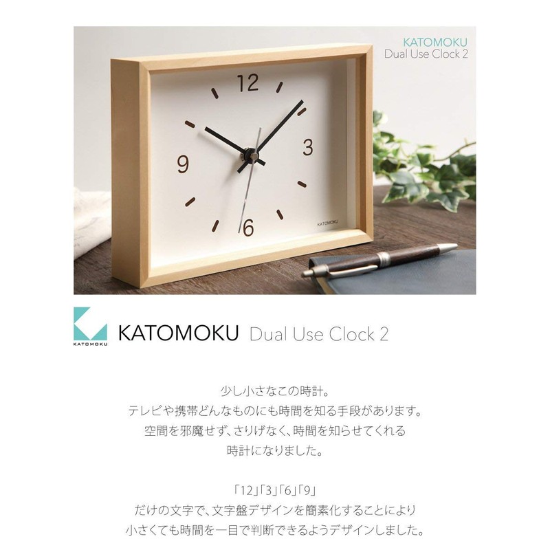 This is a KATOMOKU "Dual use clock 2" clock for both standing and hanging. Due to the small watch, the dial is not too complicated and simple to use. Kato Wood Co., Ltd. is handmade one by one. It uses an analog type movement with less failure due to the desire to use it for a little longer time. It is also sweep, so it is almost no noise.