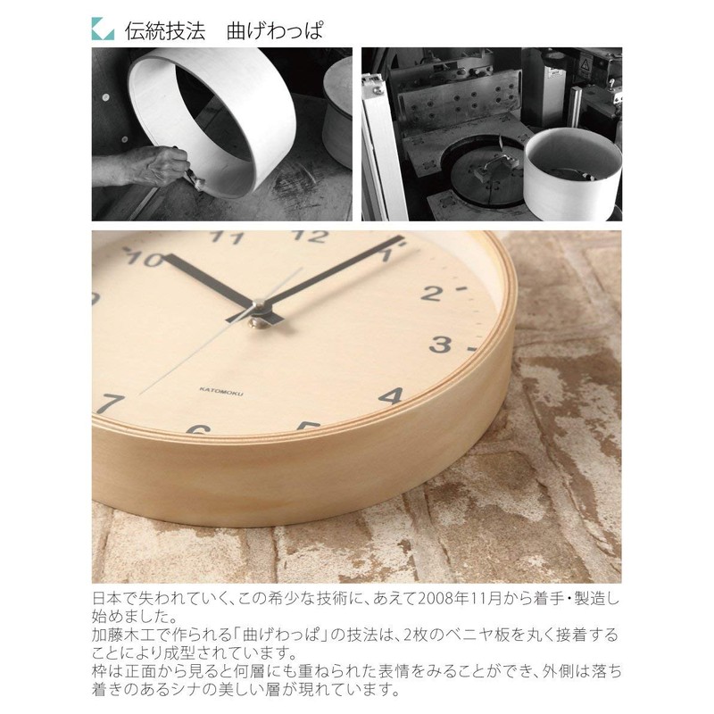 KATOMOKU plywood clock Natural Sweep (Continuous Second Hand) km-34M Diameter 252mm (Radio Watch)