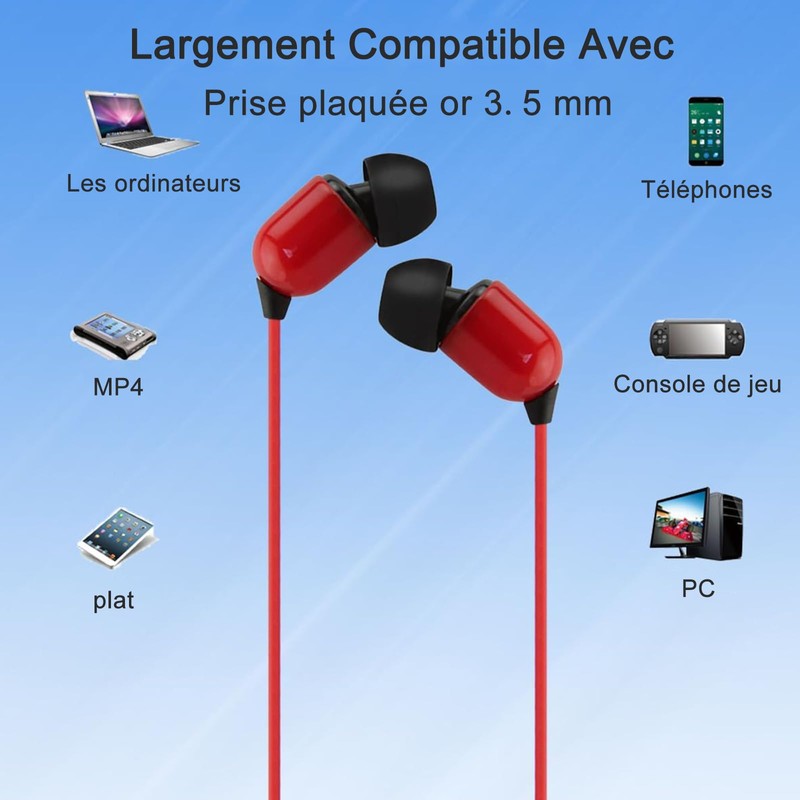 Wide Compatibility These wired in-ear headphones feature a 3.5mm jack for use with tablets, computers or smartphones. Allows you to connect at any time without worrying about disturbing others.