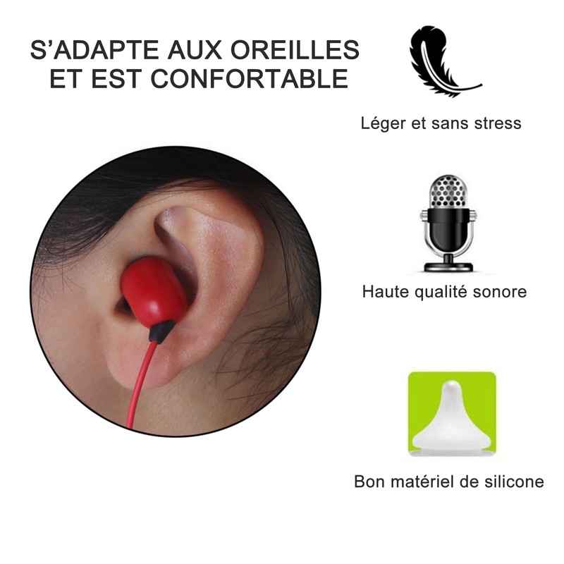 COMFORTABLE AND STABLE Our wired in ear headphones feature silicone earbuds that are ergonomically designed to prevent the headphones from falling off easily, and most importantly, they allow you to wear them for a long time, allowing you to use them for hours without feeling like it.