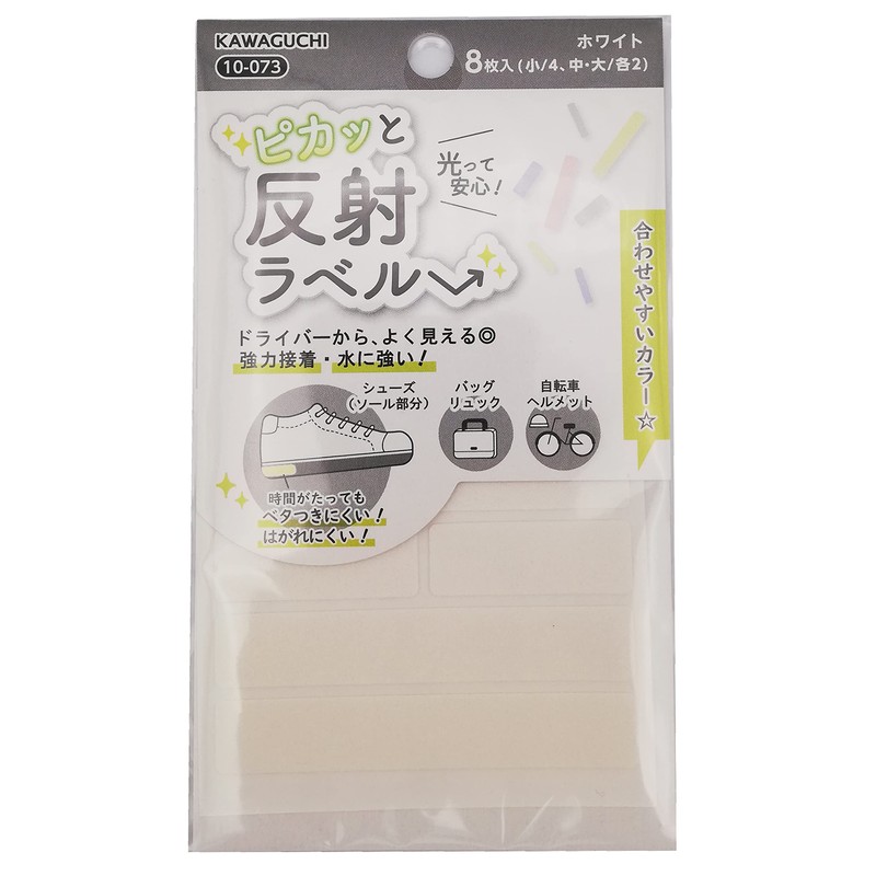 KAWAGUCHI 10-073 Reflective Labels, 3 Sizes, Total of 8, White