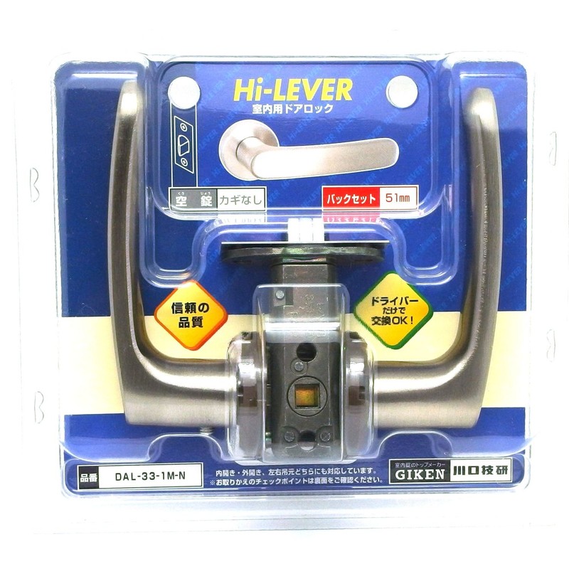 Kawaguchi Giken DAL-33-1M-N Door Lever High Lever Lock, Blister Pack, Nickel