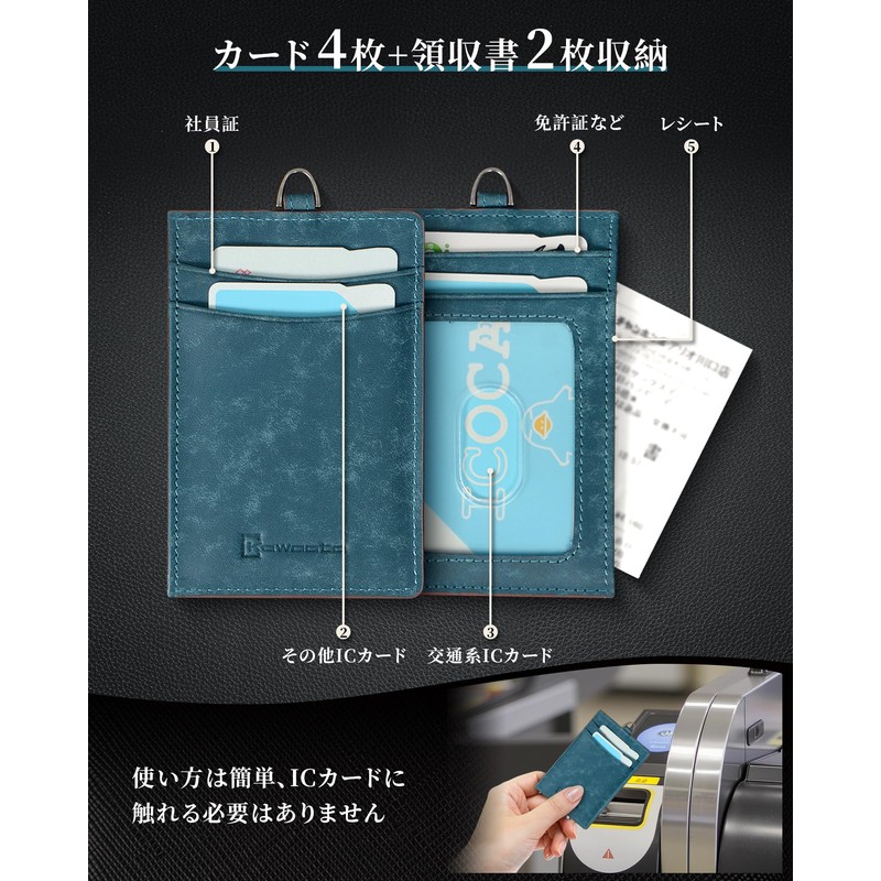 Kawaoto Men's Commuter Pass Case, Genuine Leather, Pueblo Leather, Holds 4 Pieces, Strap, Thin, Commuter Pass Holder, For Work or School Commutes, navy blue