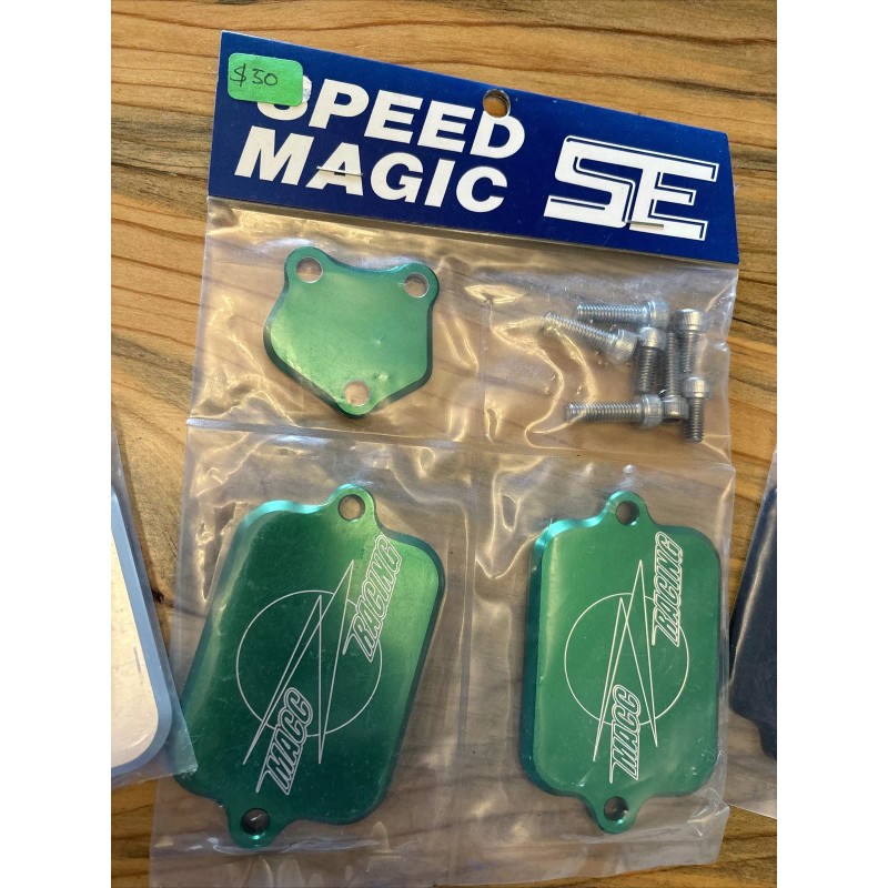 Macc Racing custom billet case cover block off plates. Not all plates will apply to your motor case cover.