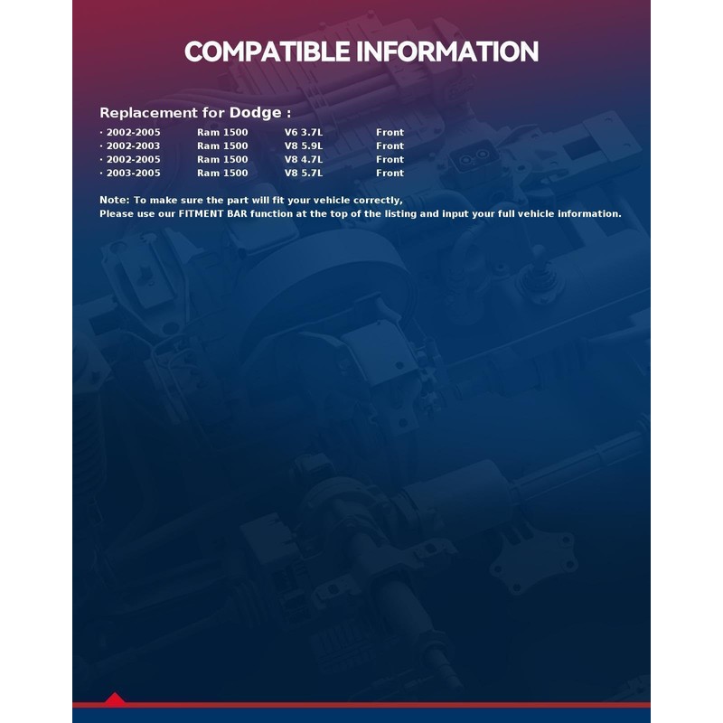 - Perfect Fitment: Precisely engineered to OE standards for 2003-2005 Dodge Ram 1500 5.7L, 2002-2005 Dodge Ram 1500 4.7L, 2002-2003 Dodge Ram 1500 5.9L, 2002-2005 Dodge Ram 1500 3.7L