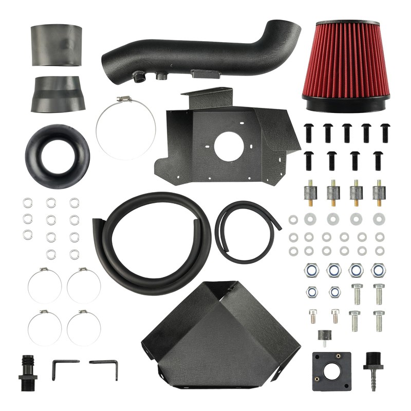 - [High Performance] : The Cold air filter intake kit can help your engine to draw more cold air resulting in better throttle response and higher explosive horsepower output.[Package included]:1 x Air Filter, 1 x Air Intake Tube, 1 x Silicon Hose, 1 x Silicon Connecter, 1 x Filter Heat Shield, All accessories on the picture are included