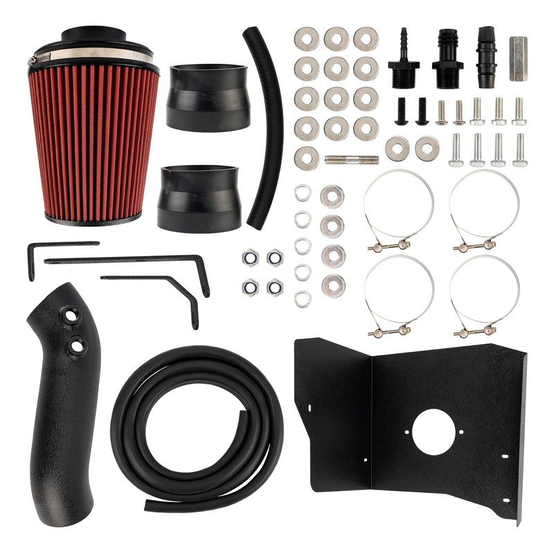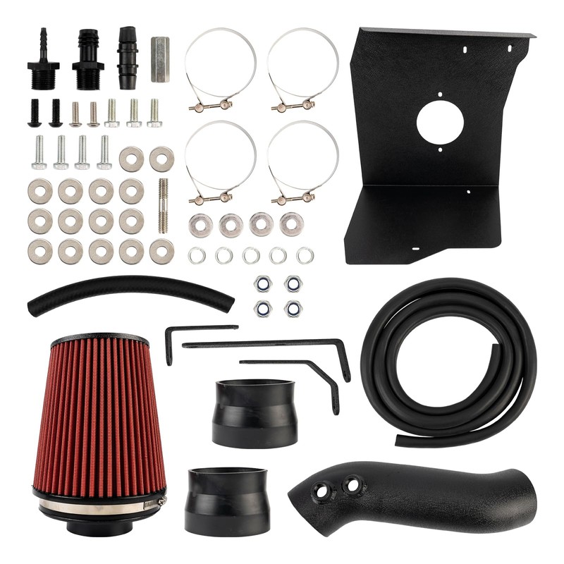 - [High Performance] : The Cold air filter intake kit can help your engine to draw more cold air resulting in better throttle response and higher explosive horsepower output.[Package included]:1*INTAKE TUBE, 1*AIR FILTER, 1*HEAT SHIELD, All accessories on the picture are included