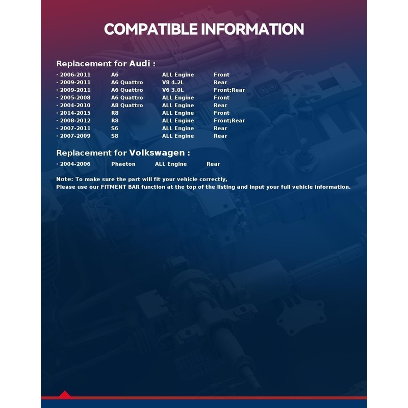 - 【Vehicle Compatible】:513227 Wheel Bearing and Hub Assembly fits for 2005-2011 A6 Quattro, 2004-2010 A8 Quattro, 2008-2012 2014-2015 R8, 2006-2011 A6, 2007-2011 S6, 2004-2006 Phaeton, 2007-2009 S8