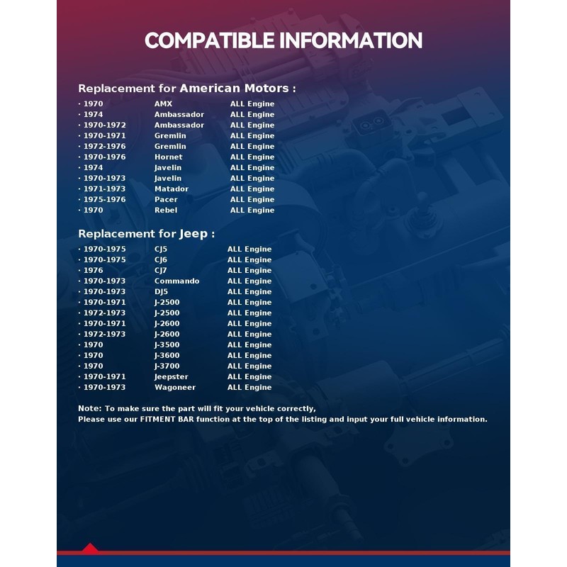 • ✔ DIRECT FIT REPLACEMENT – Precision-engineered to match OEM specifications for Jeep Commando 1970-1973, ensuring perfect compatibility and easy installation.