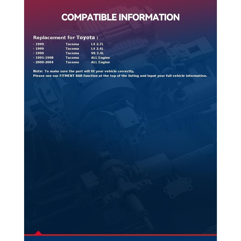 - [Perfect fit] This replacement radiator is compatible with 1995-1998 2000-2004 Tacoma, 1999 Tacoma 2.4L, 1999 Tacoma 2.7L, 1999 Tacoma 3.4L. Please use Amazon's vehicle fitment tool to confirm if the part is suitable for your vehicle application