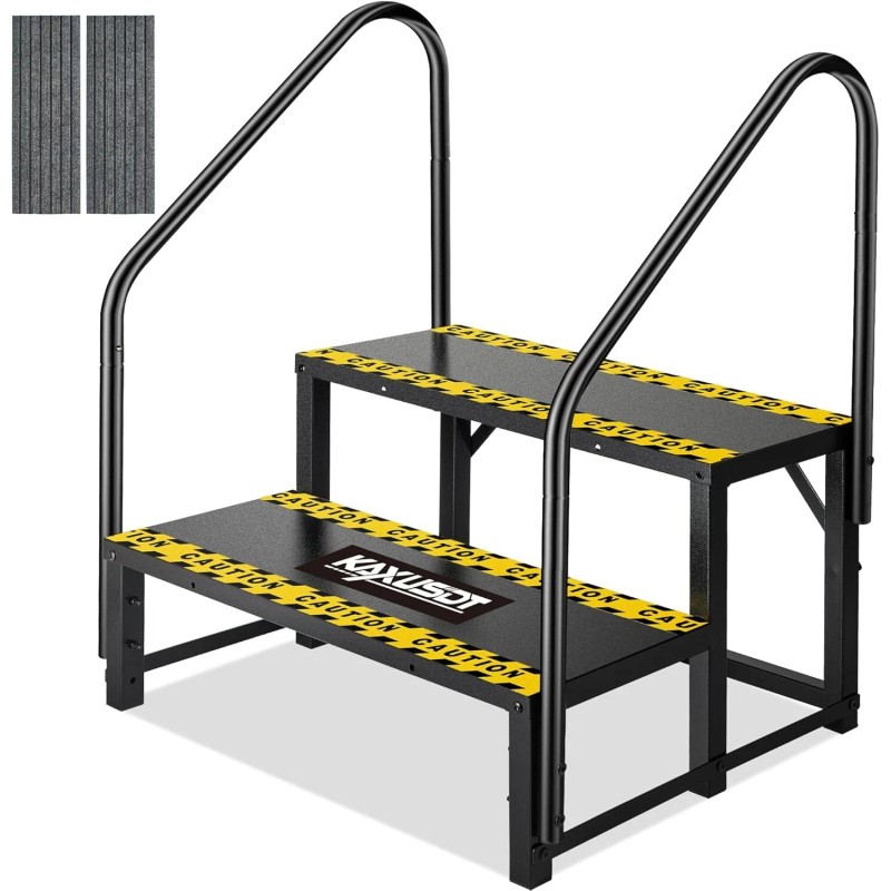 KAXUSDT 2 Step RV Steps with 2 Handrails Portable Stairs Steps for RV Camper Mobile Home - 3 Steps