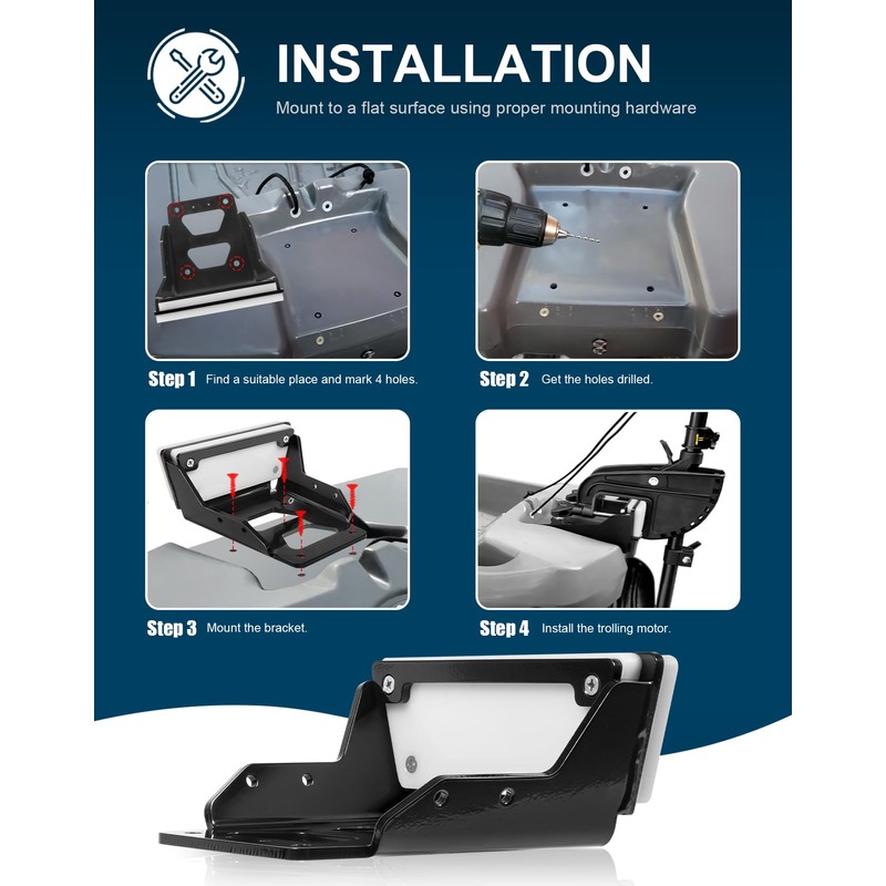 - 【Feature】With this quick-release mounting bracket, you can easily and quickly install and remove the trolling motor for storage and maintenance. It can firmly secure the trolling motor on your boat, ideal for both freshwater and saltwater environments.
