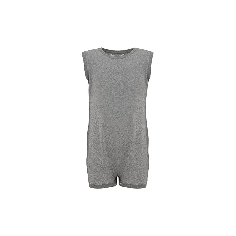 Kaycey Popper Vest Sleeveless Bodysuit With Crotch Snap Closure, Adaptive Clothing for Adults and Big Kids with Special Needs, Soft Cotton, Large, Grey