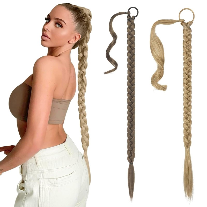 KAYEF Ponytail Extensions, 2 Pieces Extensions Braid, Ponytail Wig, Braid Extension, Braid Wig (Flax, Blonde)