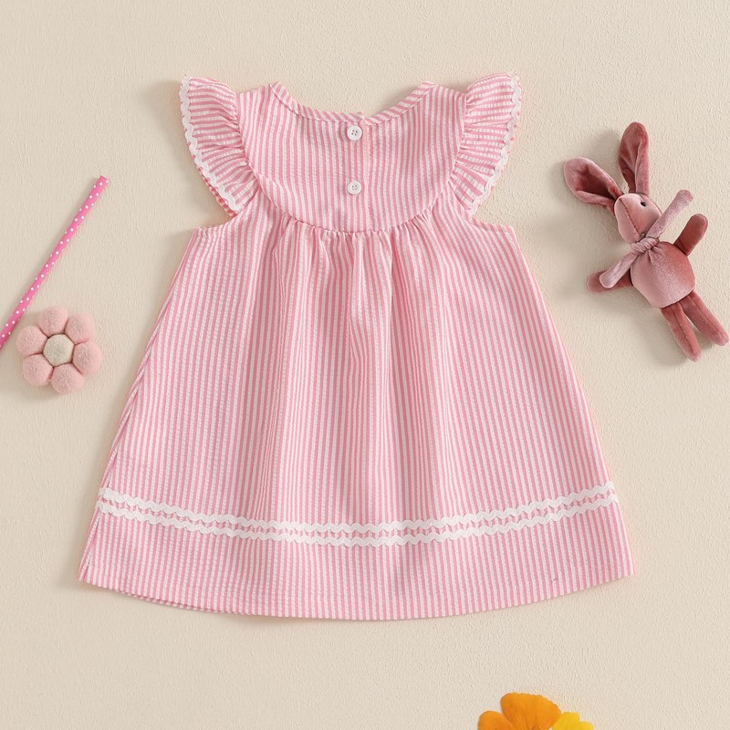 - Features:Toddler girls easter dress,little girl easter outfit,baby girl ruffle dress pink,flutter sleeves,square neck,stripes or dot print,cute easter bunny dresses for girls,easter bunny basket embroidery,lovely rabbit pocket decor,knee length a-line sundress,makes your princess more adorable and attractive