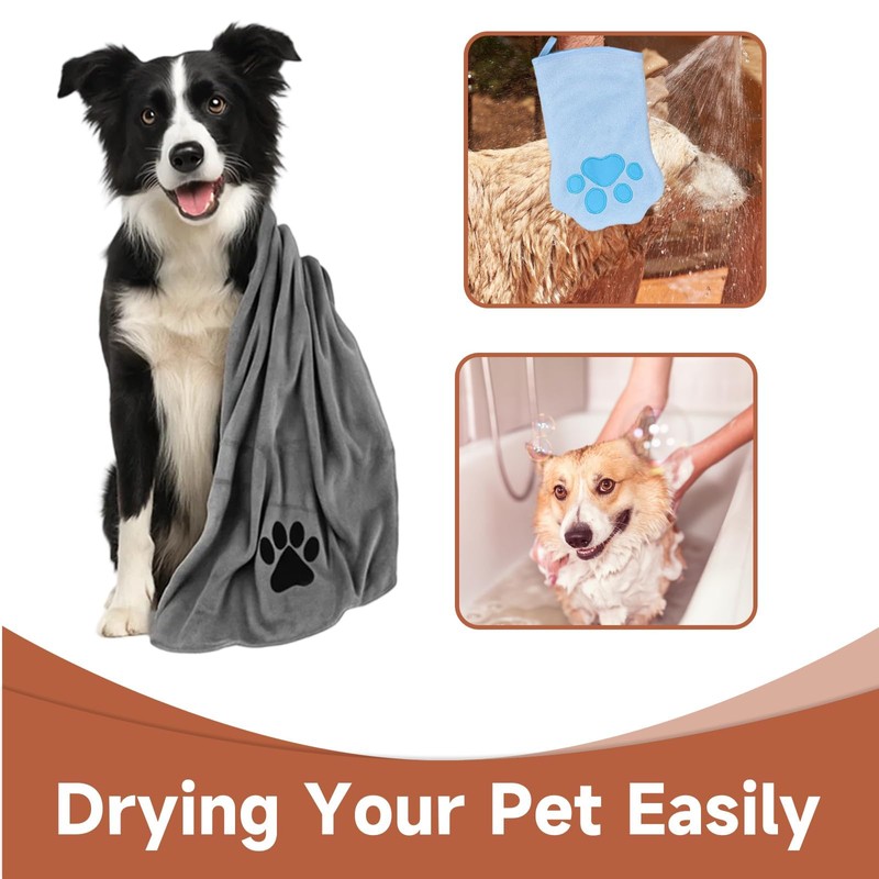 KBCYRT 2 Pack Dog Towels for Drying Dogs – Extra Large, Ultra-Absorbent Microfibre Pet Towel, Quick-Drying & Soft, Ideal for Baths, Swimming & Grooming (75x35cm), Includes 1 free grooming glove towel