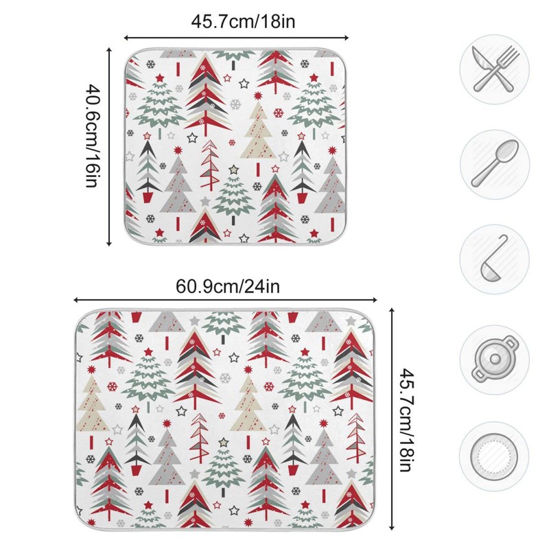 Kcldeci Christmas Cartoon Trees Dish Drying Mat for Kitchen Counter - Foldable Absorbent Drainer Farmhouse Mats Pad Rack for Counter 16x18