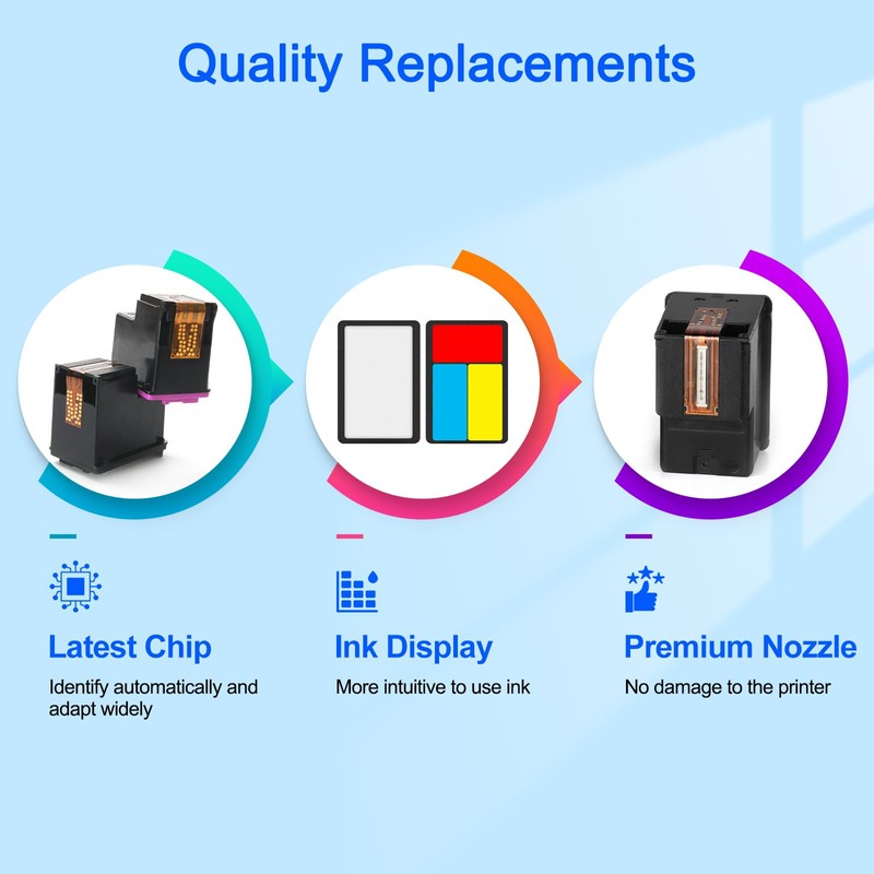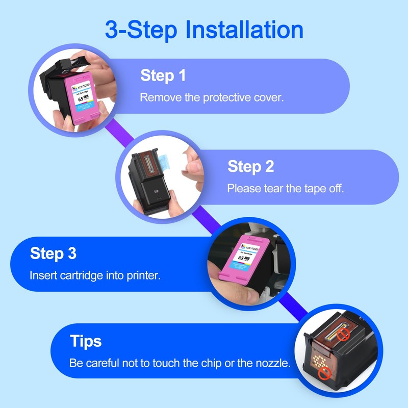 This set is specially designed for 65XL ink cartridges. It includes 5 tri-color ink cartridge (65XL color) . It can easily meet the daily printing needs of documents and color pictures. Whether it's homework, office files, or creative designs, it can present delicate and clear text and vivid colors, comparable to the quality of original cartridges!