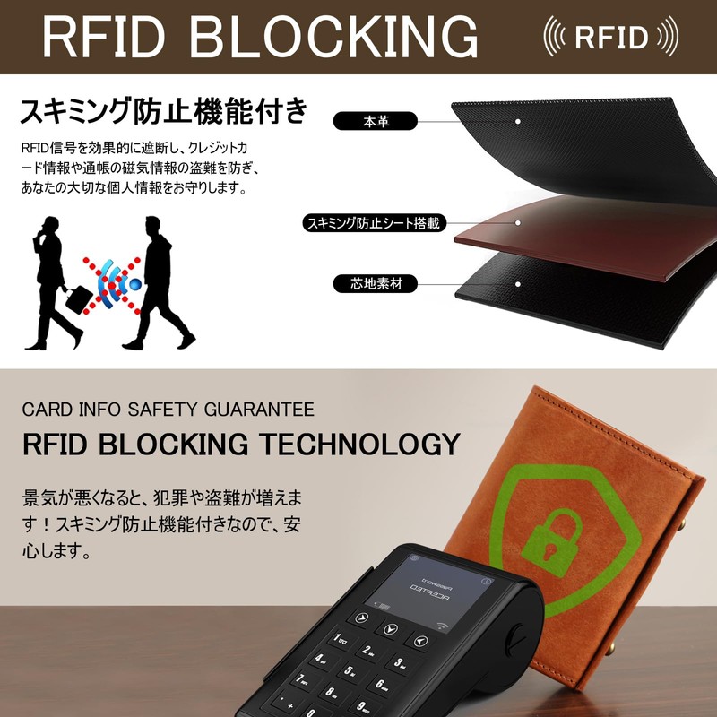 - [Skimming Prevention Function] This skimming "card crime" has been frequently issued both domestic and abroad in recent years (a crime that uses special equipment to steal credit cards and IC card information). Our wallet adopts RFID anti-magnetic material, effectively block RFID signals, prevent the theft of credit card information and passbook magnetic information, protect your important personal information