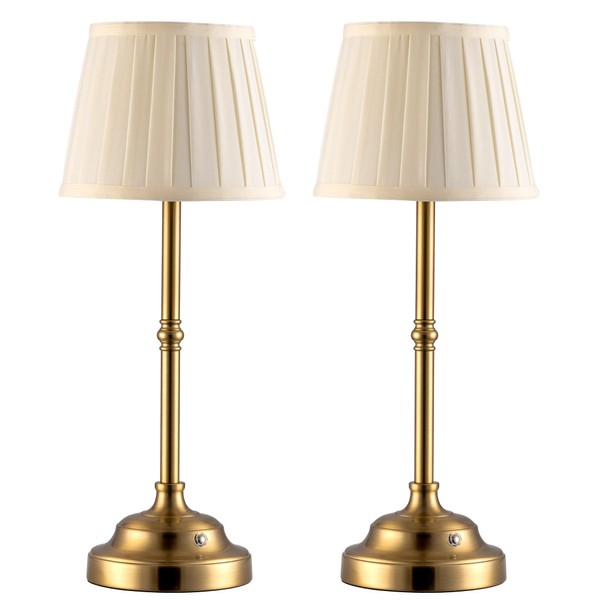 KDG Cordless LED Table Lamp Set of 2, Portables Fabric Shade Desk Lamps, 4000mAh Rechargeable Battery Powered Lighting, Dimmable Light for Dining Room, Bedroom, Bedside, Night Light, Balcony (Bronze)