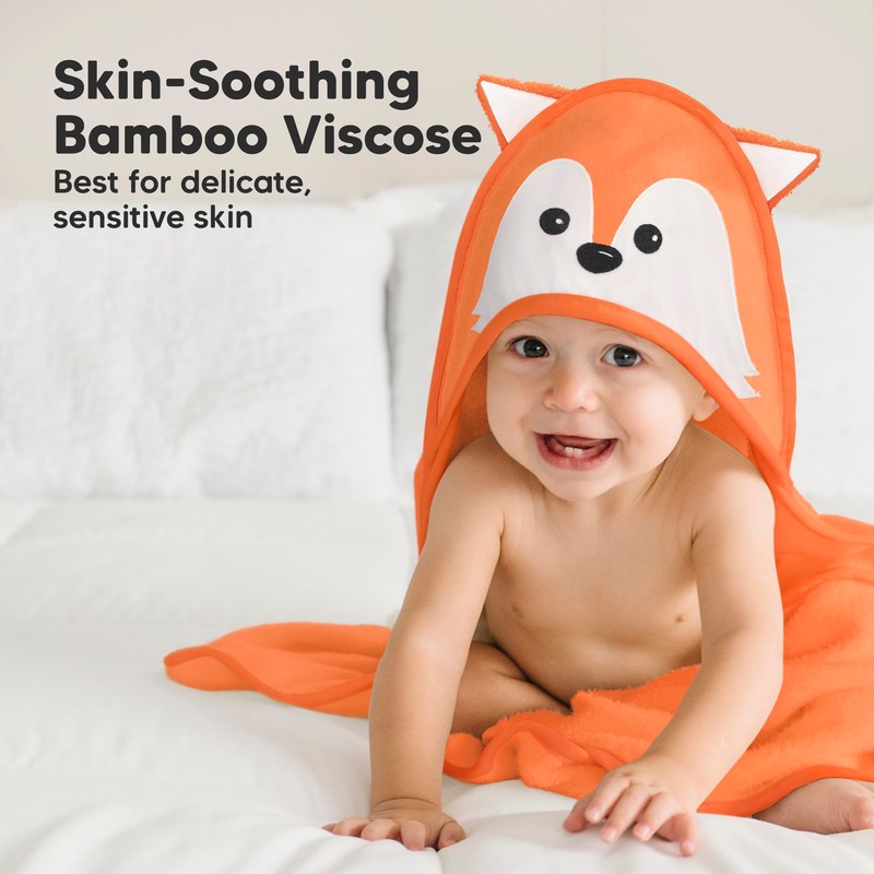 KeaBabies Hooded Baby Towel for Newborn - Viscose Derived from Bamboo Large Baby Bath Towels with Hood for Boys, Girls, Toddler, Extra Absorbent & Soft Newborn Bath Essentials (Fox)