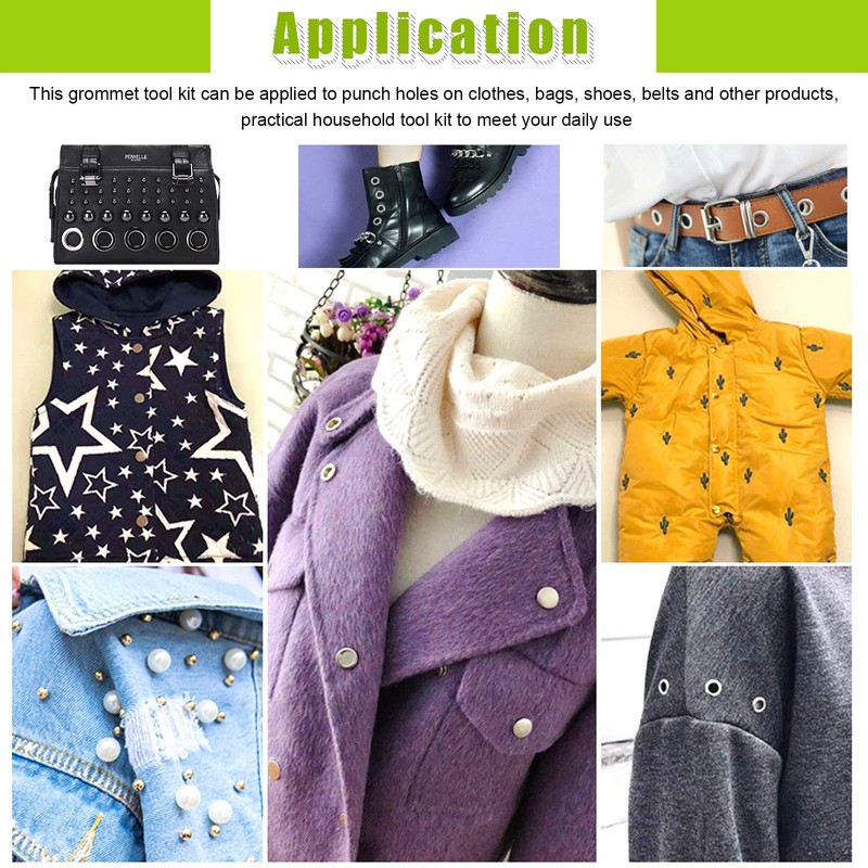 - 【Wide Application】The metal eyelets grommets kit is perfect for leather, tents, awnings, canvas, tarps and other cloth-made items. You can widely apply them into bags, shoes, clothing, shoelaces and other DIY crafts projects!