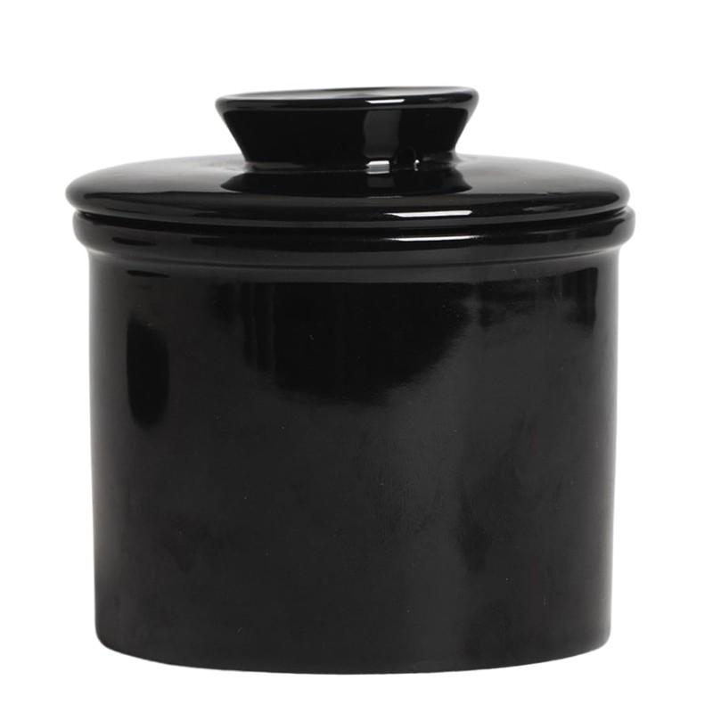 Kedested French Butter Crock with Lid, Ceramic Butter Keeper for Fresh Spreadable Butter to Leave on Counter with Water Line, Butter Container Holder Kitchen and Home Decor, Black