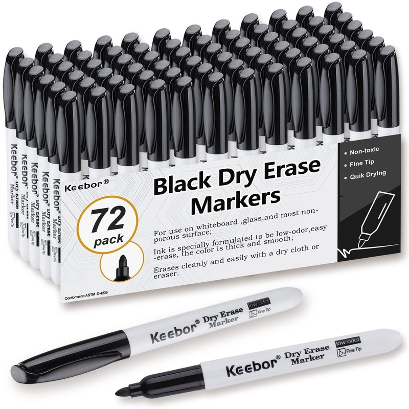 Keebor Basic Fine Tip Dry Erase Markers, Black, Low-Odor Whiteboard Markers, 72 Count