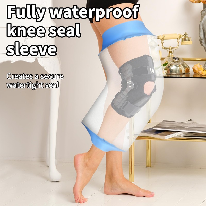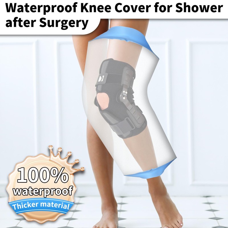 - Waterproof Knee Cover for Shower After Surgery. We adjust the softness of the silicone, achieving softness and elasticity. Without the limitness of the plastic ring, you can pull the silicone as wide as you can. Soft and high elastic silicone seal can reduce the risk of cutting your limb blood.