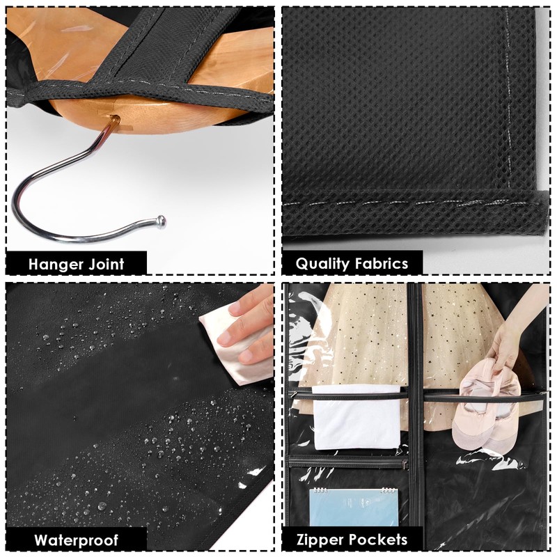 - 【Premium Quality Fabrics】 - Set of 1 Dance Costume Bags,Crafted with tear-resistant 0.1mm PVC outer layer + breathable 75g non-woven lining to protect delicate dance costumes, party dresses, and formalwear from dust, wrinkles, and moisture, odorless, breathable and Waterproof and reuse use!