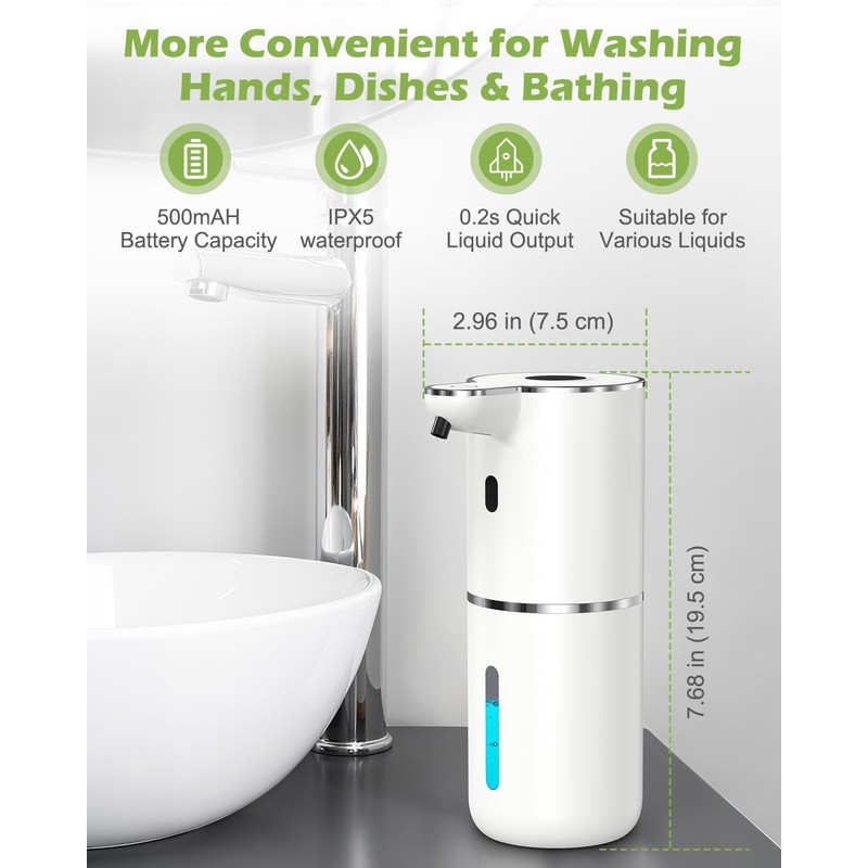 - Smart Sensor: Precise infrared motion and high-sensitivity sensor dispenses foam in 0.2s (No-Touch Operation), preventing cross-contamination, ideal for home, hospital, restaurant. Hygienic & safe for kids and adults