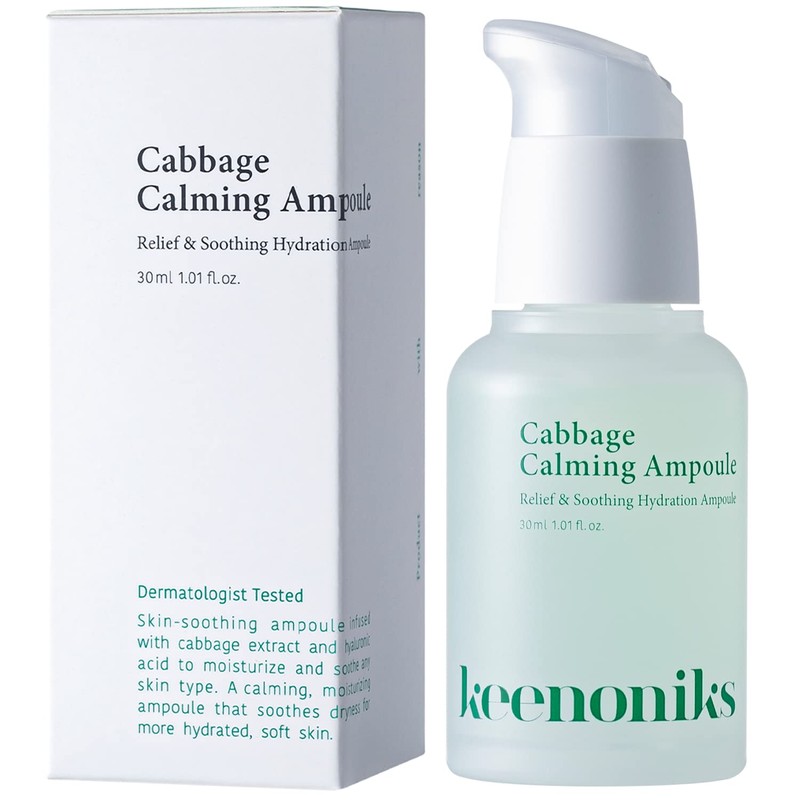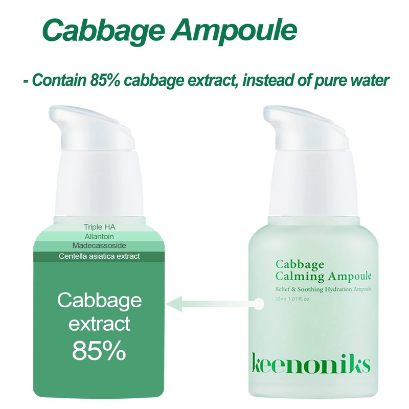Keenoniks Serum for Face - 85% Cabbage Extract Calming Facial Ampoule helps Skin Soothing & Moisturizing, Pore Minimizing, pH Balance with Mild Acidic Essence for Sensitive, Dry Skin - 1.01 Fl Oz