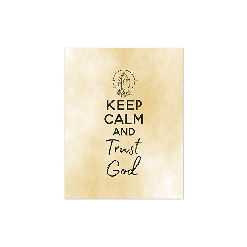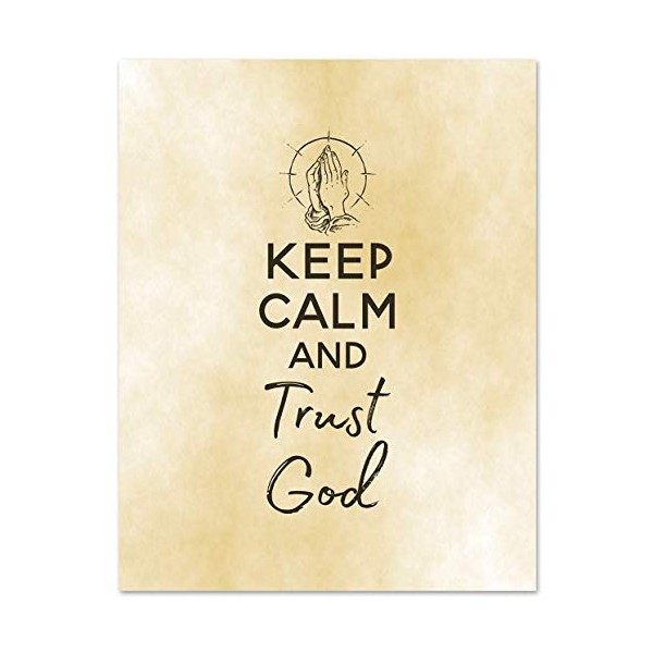 "Keep Calm and Trust God" Inspirational Wall Art - Unframed 11 x 14 Print - Great Gift for Friends & Family