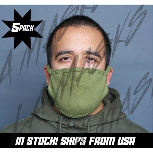 Keep It Covered 5 PCS Dual Layer Washable Face Masks (Color Olive)
